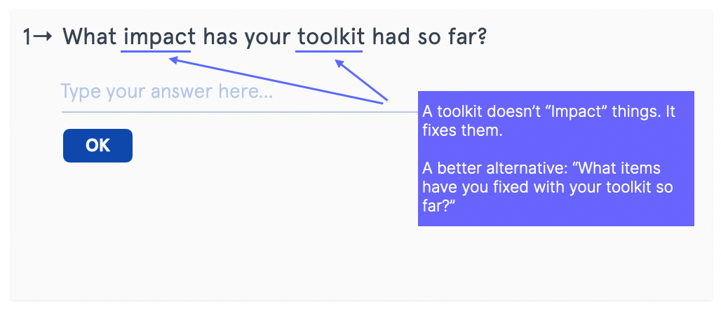 Look at the question in the image: “What impact has your toolkit had so far?”