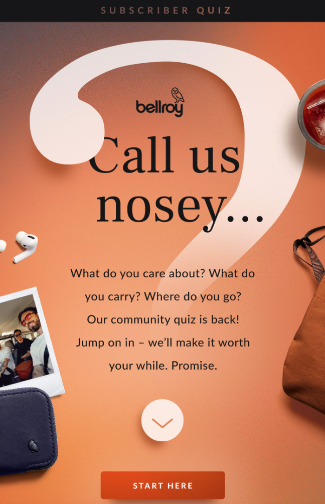 👉 Mentioning the survey’s length is good practice, but not essential (see Bellroy example below).