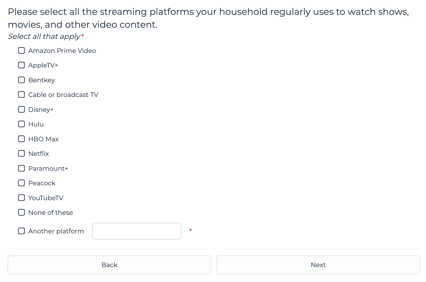 👉 For familiar items (e.g., streaming platforms like Netflix or countries like the USA), sort the list alphabetically to help respondents quickly locate their options.